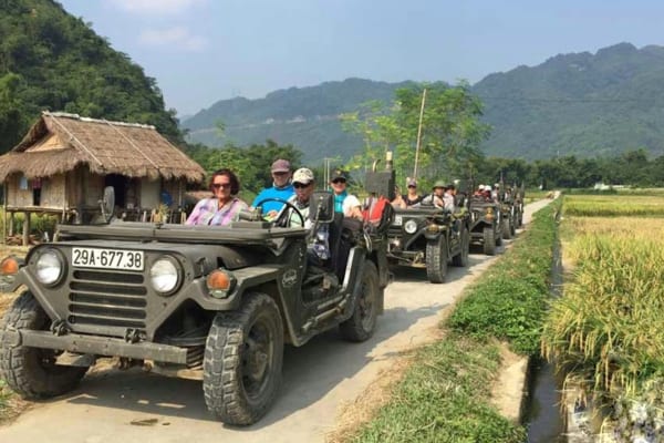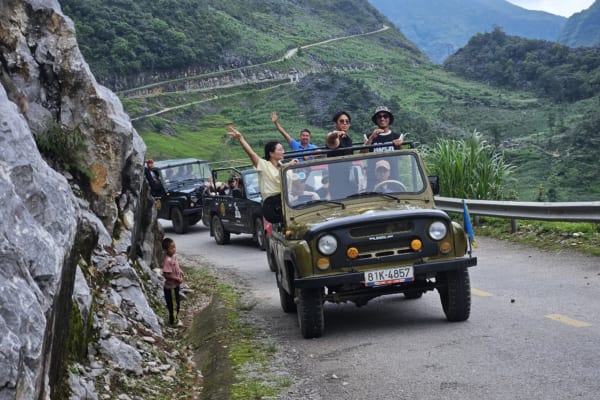 VIP sleeper bus pick up/drop off Hanoi - Ha Giang. 4WD Jeep throughout the journey.